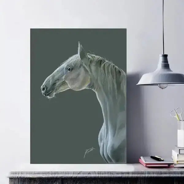 Signed, unframed with backing board plus retail sticker with barcode on rear. Individually cello wrapped. Stunning new art which feature exquisite, timeless, hand illustrated equine fine-art.