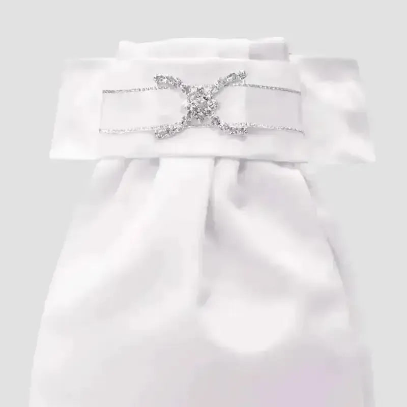 The Equetech Ready-Tied Stock Ameila Deluxe is an exquisite hand-made show stock with a diamante curved cross . This Ready-Tied Stock is perfect for that finishing touch in the show ring and is super easy to put on with a velcro fastening at the back. Best used with a show shirt.