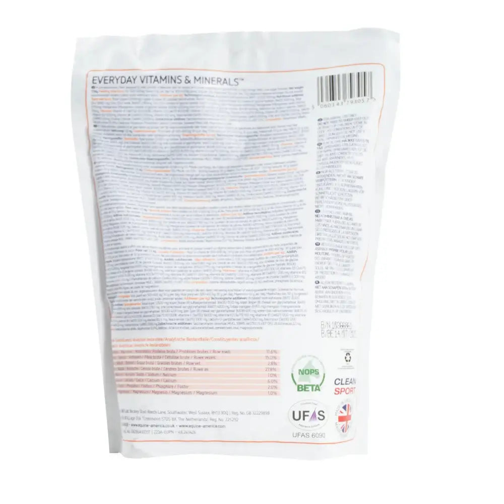 Providing over 25 key vitamins, minerals and trace elements, together with probiotics and prebiotics, Everyday Vitamins and Minerals are the ideal way to help ensure optimum health and performance in horses and ponies on forage-based diets, or low intakes of concentrate feed.