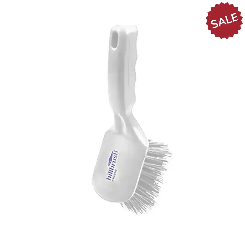 254mm polypropylene block, filled stiff polyester and resin set. It has been one of the range's most popular products for many years. This rugged brush is designed to work and to last. The angled material at the sides and front will allow cleaning in hard to reach corners, while the gripped handle is comfortable to use even in gloved hands.