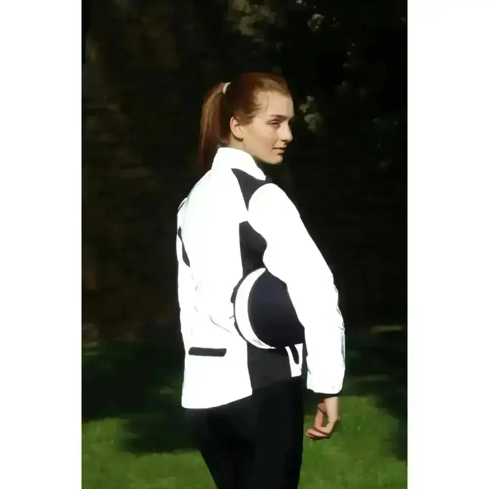 An innovation in riding safety, the Hy Equestrian Silva Flash Reflective Jacket will ensure that you will stand out during those dark, winter nights. Designed with a highly reflective outer shell the jacket offers the rider full 360 degrees visibility through its scintillating white glow when subjected to a vehicle's headlights.