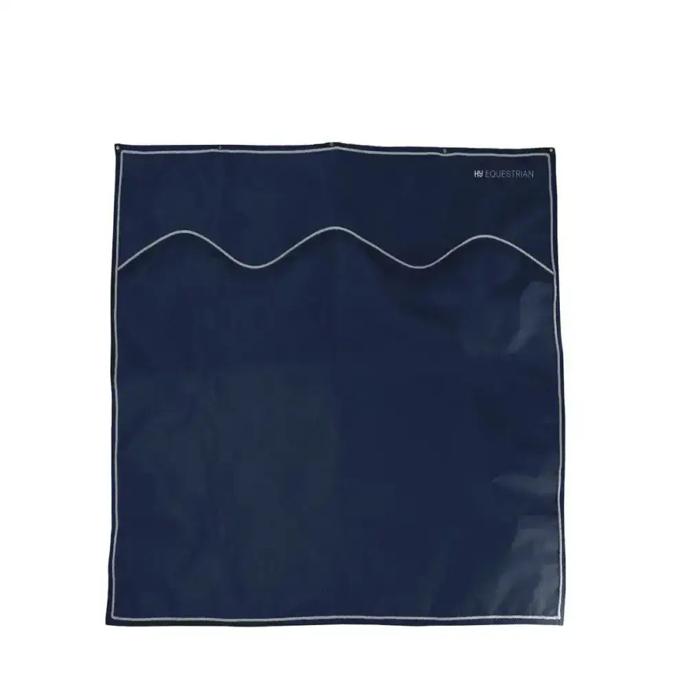 A smart stall drape complete with four trigger clips to easily hold it in place. Featuring silver piping around the edge and the Hy Equestrian logo embroidered in one corner. Perfect at competitions. Matches the Hy Equestrian Stable Guard and Hay Bag.