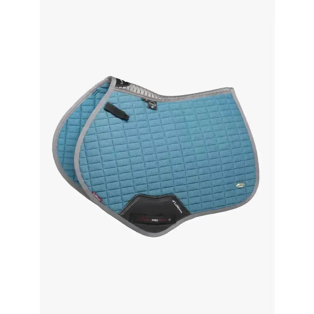 The LeMieux Self-Cooling Saddle Pads are made with the innovative FeelCool ¨ Ice material which has a cooling crystal kneaded into the weave. This is activated by moisture; the greater the moisture the greater the cooling effect! The crystals have incredible heat pick-up & transfer properties gradually absorbing and wicking sweat from the horse. Under extreme conditions, once dissipated a reverse rapid cooling effect is produced.