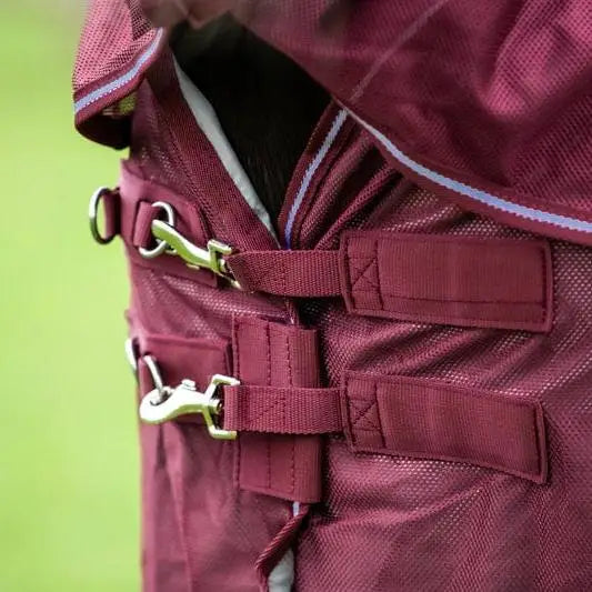 A longer cut, detachable neck cover with nylon strip to protect your horses mane. The neck cover ensures your horse gets maximum coverage even when grazing and is secured with double locking Velcro straps. The shoulders are nylon lined to protect and prevent rubbing.