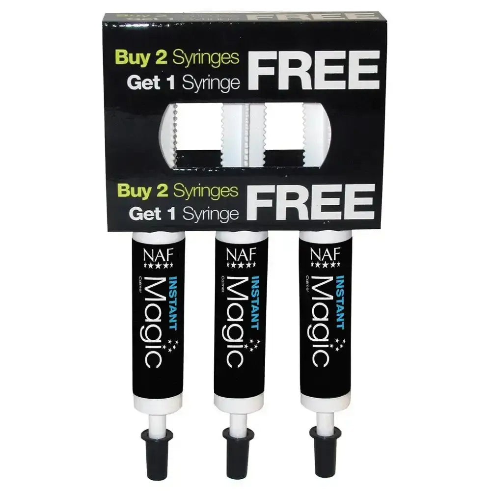 NAF Five Star uses bio-available magnesium combined with a fast acting herbal base for an effective instant calming effect. Instant Magic is recommended for horses who only require the use of a calmer on an immediate, short term basis for specific potentially stressful situations; such as competition, clipping, travelling or a visit from the farrier or dentist. In addition it can be used to top up the calming effect of a daily Magic supplement as and when needed. Note: NAF Five Star has magnesium used in Instant Magic does not contravene FEI rules and is safe for use in all horses.