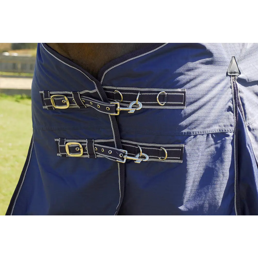 Extremely handy mid-season, this rug features a 600 denier ripstop, waterproof breathable outer. It has a mid/light 100gsm polyfill with a breathable nylon lining. Multi-adjustable chest straps, front shoulder gusset, cross-over surcingles, leg straps, no back seam, large pleated tailguard with reflective stripe and strengthened surcingle guides. A perfect weight for unpredictable weather in slightly warmer months.