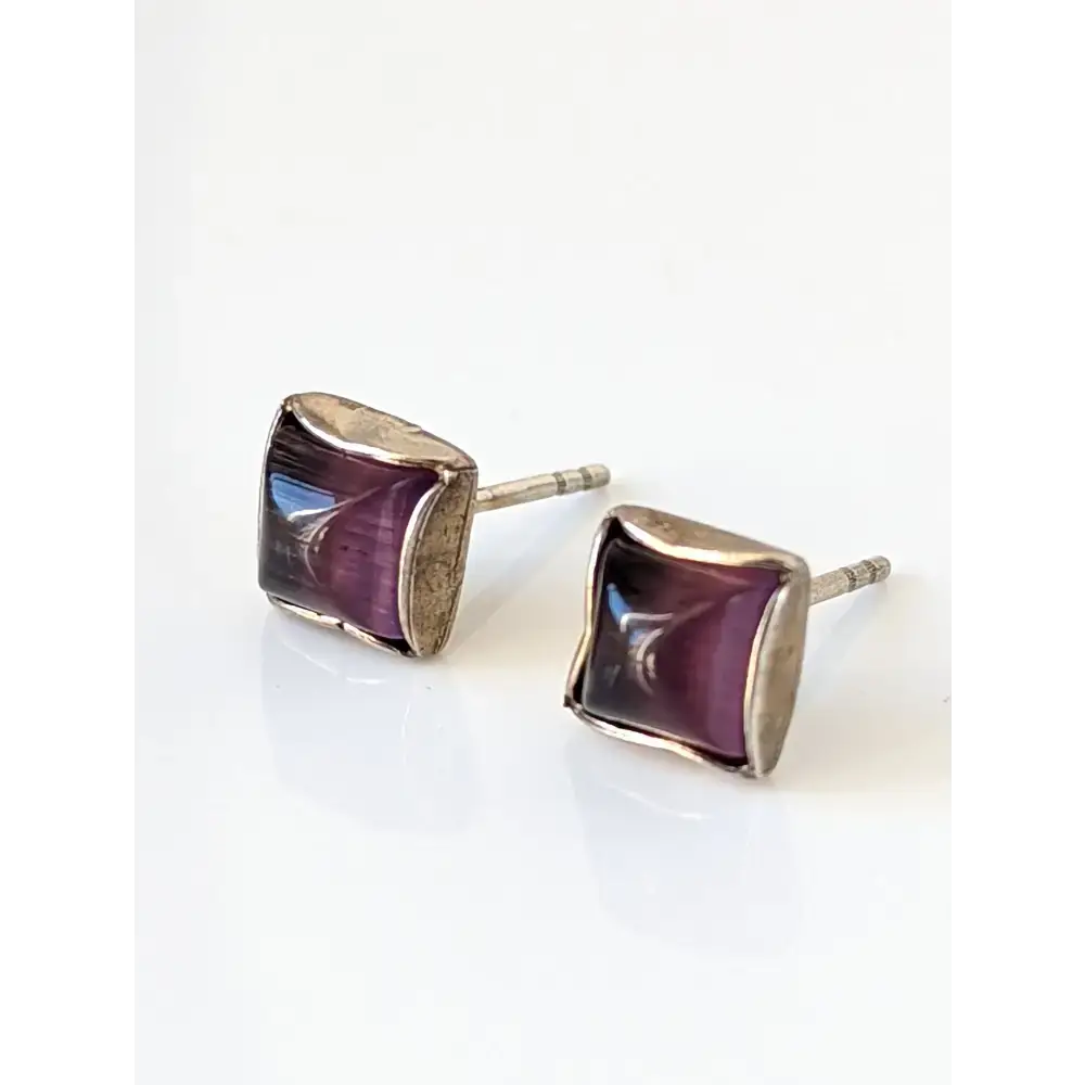 Silver Steed Square Coloured Stud Earrings