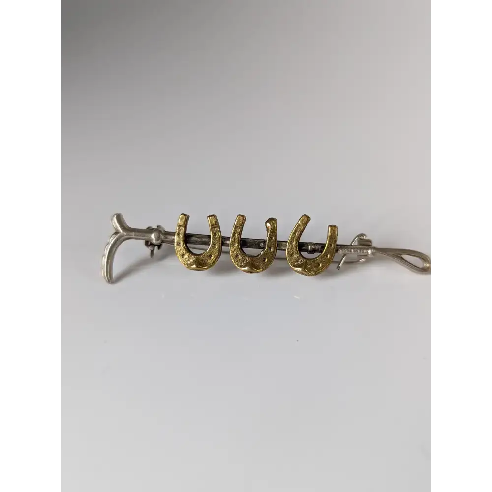 Crafted from 925 silver, this unique, handmade brooch or stock tie pin features a gold accent.