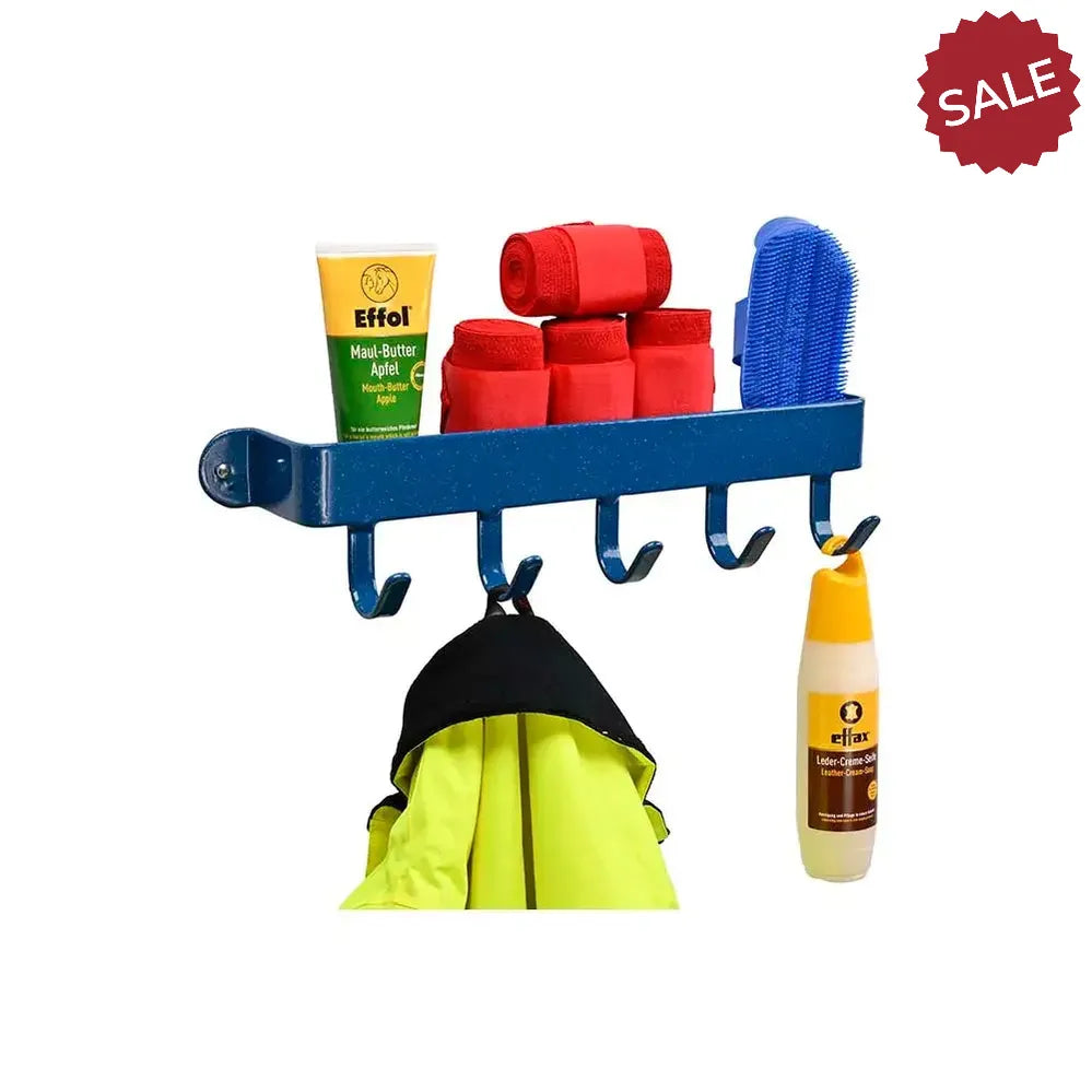 The unique strong steel shelfie bracket plus the addition of conventional hooks. Installation is just two screws. Made from Stubbyfine coated strong steel construction.