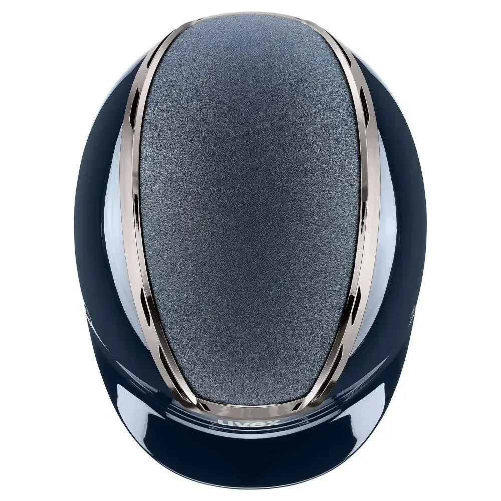 High-performance. Stylish. Comfortable. High-tech safety meets functional elegance in the uvex exxeed blaze. With a high-gloss piano lacquer finish, glamour top and chrome frame, for a glowing performance in the ring. Comfortable and protective for a safer ride. The hardshell construction of this riding helmet, made up of a sturdy plastic outer shell and lightweight EPS core, is extremely impact resistant. While the uvex 3D IAS system with the quick-adjust strap dividers creates a tailored fit on the head. And this riding helmet also exceeds with more comfort – in the form of wide air vents for a cooler wear climate, plus premium synthetic leather strap covers that feel soft against the skin. The uvex monomatic comfort buckle can be operated with one hand, even when wearing gloves. uvex exxeed blaze – a statement piece.