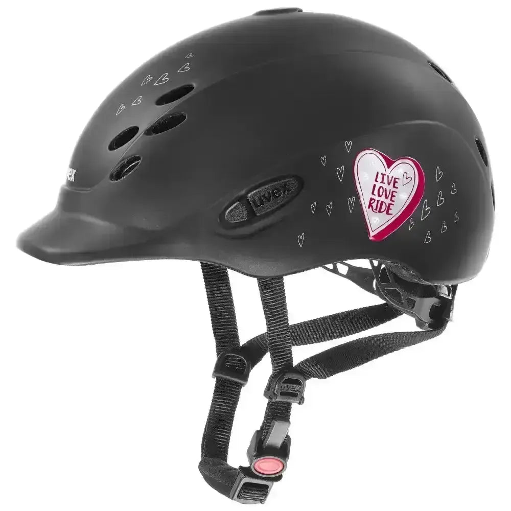 Uvexx Onyxx riding hat for children and teenagers - new standards regarding safety and stylish mat laquer look. The Onyxx combines father light weight with highest comfort and outstanding ventilation. The three dimensional adjustable sizing system uvex IAS 3D enables a perfect fit for virtually any head shape with easy fine tuning. The Fast Adapting System (FAS) ensures that the helmet stays securely on the head in all situations and is easily adjustable. This Helmet is Kite Marked and has the VG1 standard meaning it is able to be used in all disaplines such as BE- BD- BSJA- Riding Club and Pony Club.Standards: VG1 01.040 2014-12